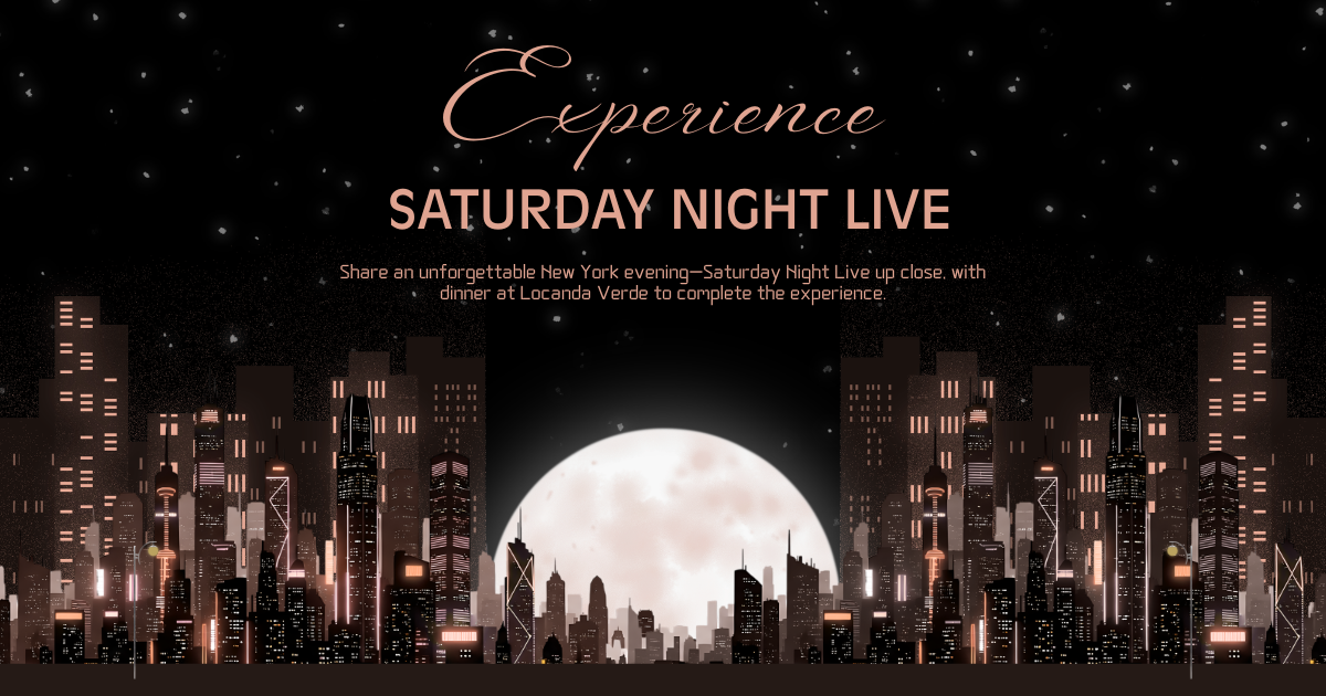 Enjoy a truly iconic New York experience with two tickets to a Saturday Night Live dress rehearsal—an opportunity typically available only through a highly competitive lottery—on a mutually convenient date between October 2026 and May 2027. Complete the evening with dinner at Locanda Verde (either the original 377 Greenwich Street location or Hudson Yards), making for a seamless and memorable night in the City. Rare, exciting, and nearly impossible to replicate, this is a unique chance to experience one of America’s most legendary shows from the inside.